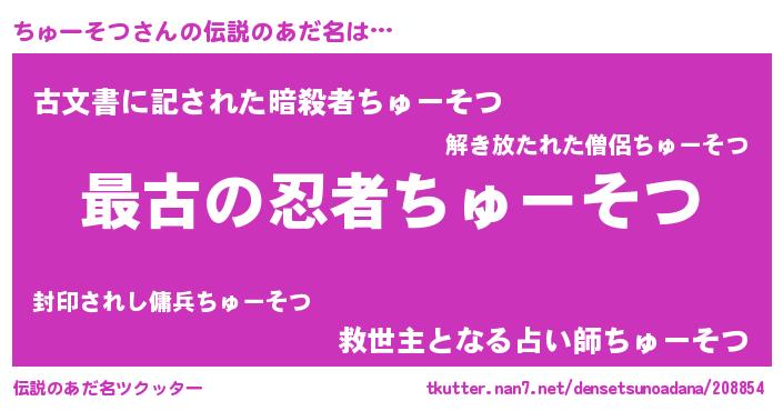 | ファンタジー風あだ名 | 『エターナルチューソツー』『ゼチュトゥ』 |
