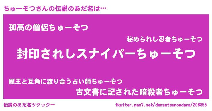 | ポケモン風あだ名 | 『チュチュウ』『ヒチューソツ』 |