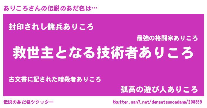 | 欧米人風あだ名 | 『ダニエルありころ』『マイケルありころ』 |