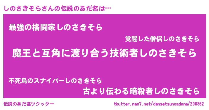 | ヘコむあだ名 | 『豆乳』『しのさきそら(小並感)』 |