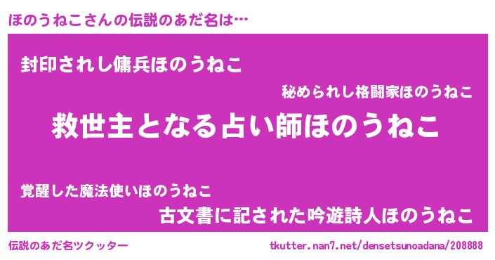 | ヘコむあだ名 | 『ほのにゅー』『ほのうねこ(爆)』 |