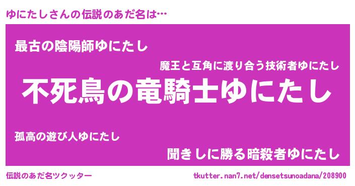 | 意味不明あだ名 | 『ペロリンゆにたし』『自称ゆにたし』 |