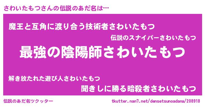 | 意味不明あだ名 | 『自称さわいたもつ』 |