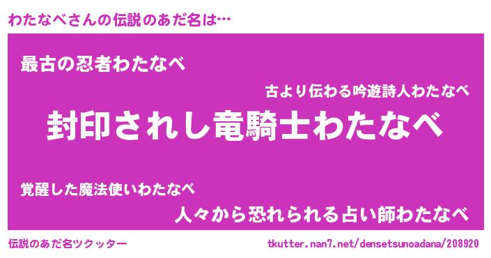 | ヒーロー風カッコイイあだ名 | 『スーパーワタナベ』『仮面ワタダー』 |