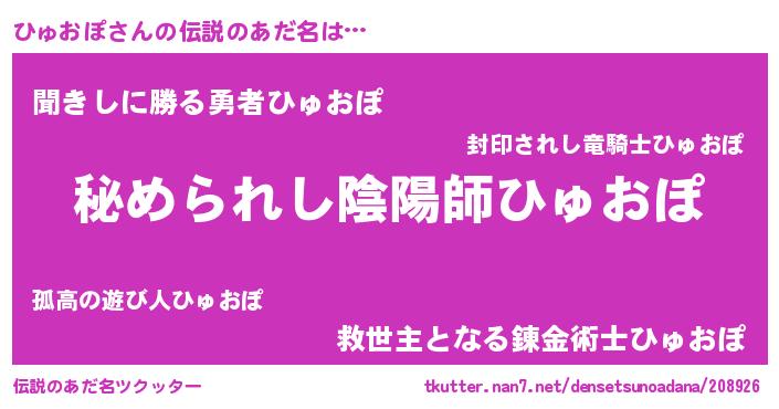 | 男性向けラノベタイトル風あだ名 | 『魔法科高校のひゅおぽ』 |