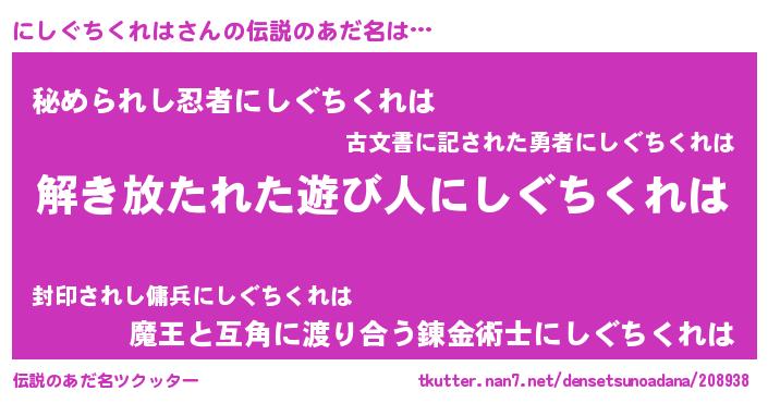 | 意味不明あだ名 | 『とにかく怪しいにしぐちくれは』 |