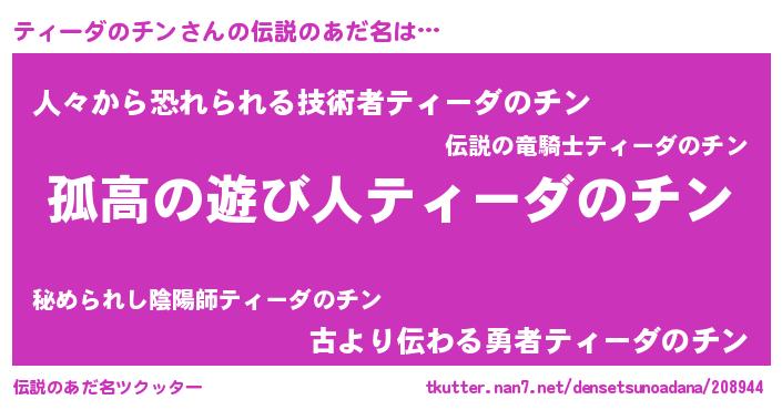 | ヒーロー風カッコイイあだ名 | 『暗黒騎士ティ』『ネオティーダノチン』 |