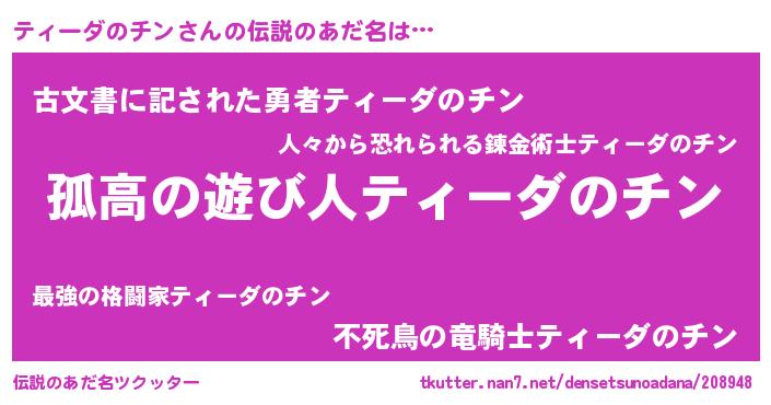 | 男性向けラノベタイトル風あだ名 | 『緋弾のティーダノチン』 |