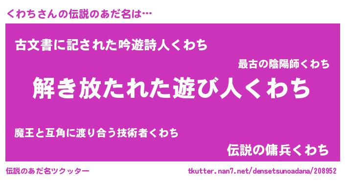 | 意味不明あだ名 | 『住所不定無職くわち(95歳)』『自称くわち』 |