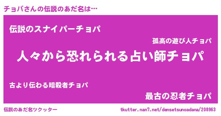| ヒーロー風カッコイイあだ名 | 『正義の使者チョパ』『スーパーチョパ』 |