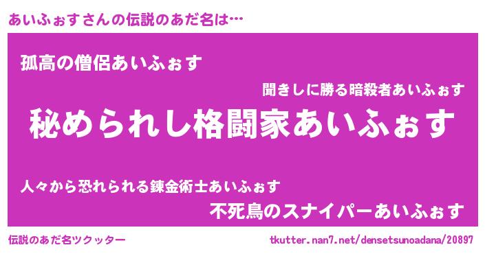 | ファンタジー風あだ名 | 『エターナルアイフォスー』『ゼアイトゥ』 |