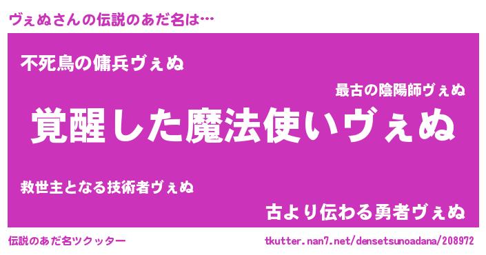 | 意味不明あだ名 | 『とにかく怪しいヴぇぬ』『自称ヴぇぬ』 |