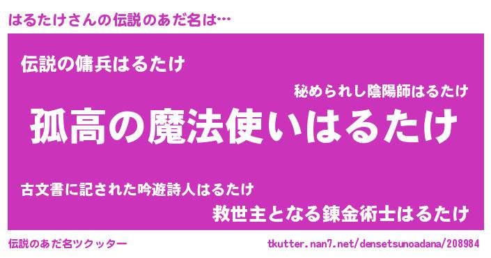 | 意味不明あだ名 | 『住所不定無職はるたけ(8歳)』 |