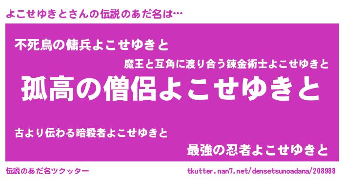 | 意味不明あだ名 | 『とにかく怪しいよこせゆきと』 |