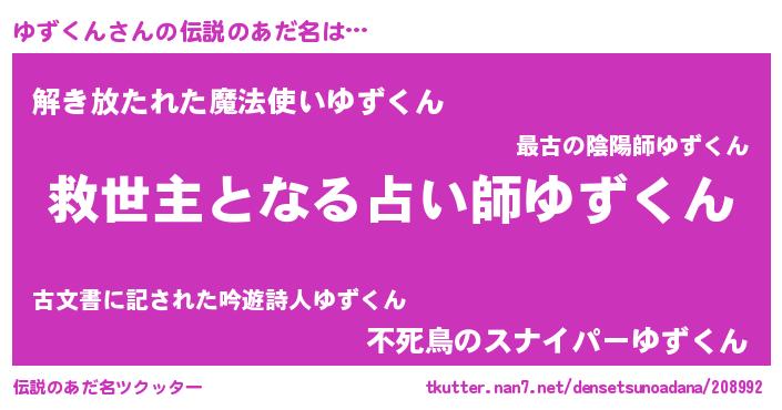 | 男性向けラノベタイトル風あだ名 | 『ノーゲーム・ノーユズクン』 |