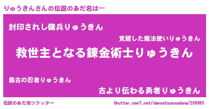 | ヒーロー風カッコイイあだ名 | 『天空の使者りゅうきん』『幻影騎士リュ』 |