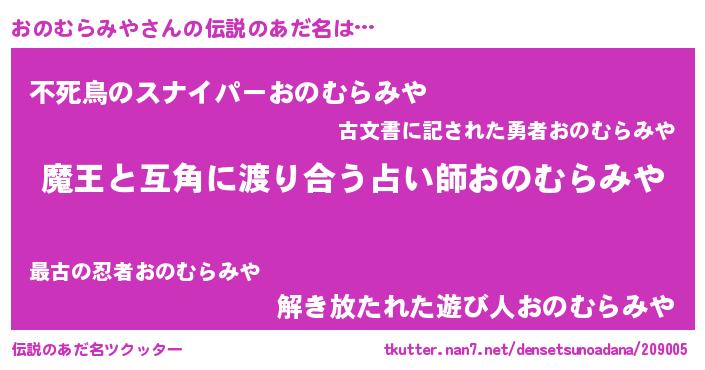 | 女子向けラノベタイトル風あだ名 | 『おのむらみや恋絵巻』 |