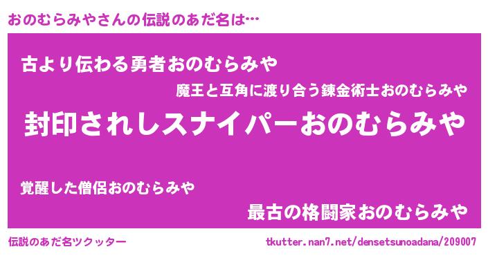 | ヘコむあだ名 | 『おのもー』『おのむらみや(苦笑)』 |