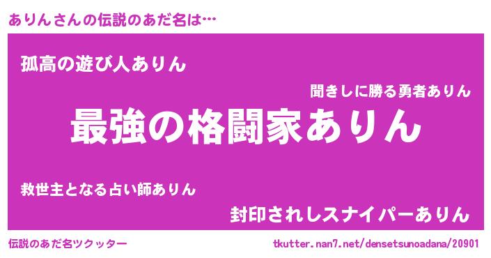 | ヒーロー風カッコイイあだ名 | 『ウルトラありんマン』『黄金騎士アリ』 |