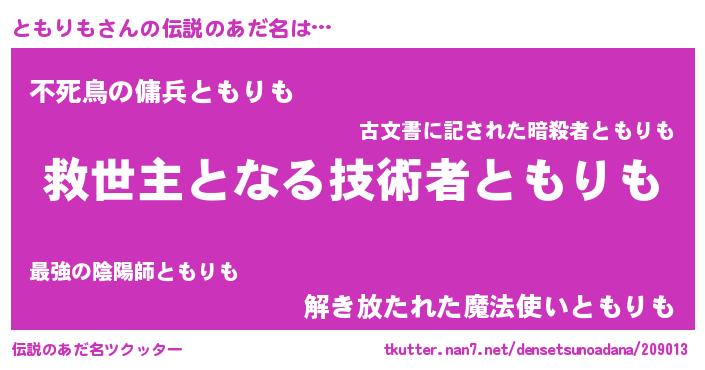 | ヒーロー風カッコイイあだ名 | 『仮面トモダー』『愛の使者ともりも』 |