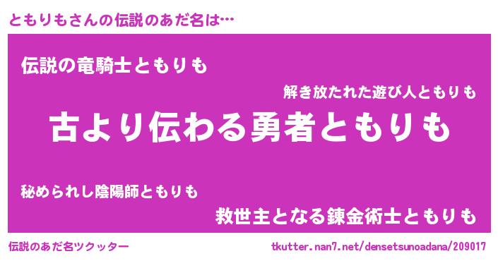 | 意味不明あだ名 | 『永久保存ともりも』『自称ともりも』 |