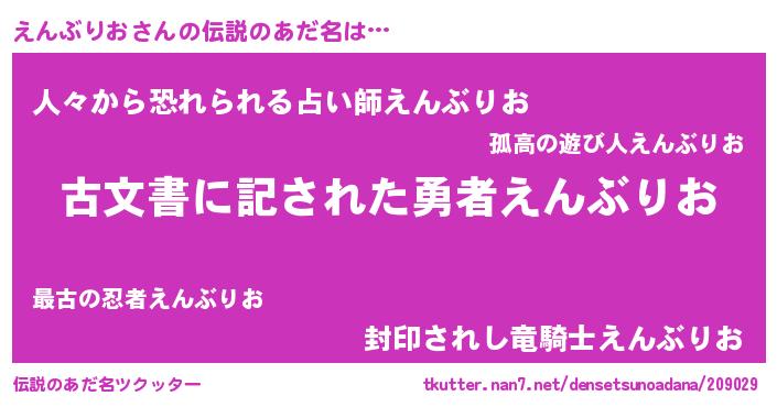 | 意味不明あだ名 | 『永久保存えんぶりお』『自称えんぶりお』 |