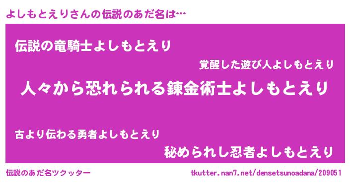 | 意味不明あだ名 | 『住所不定無職よしもとえり(89歳)』 |