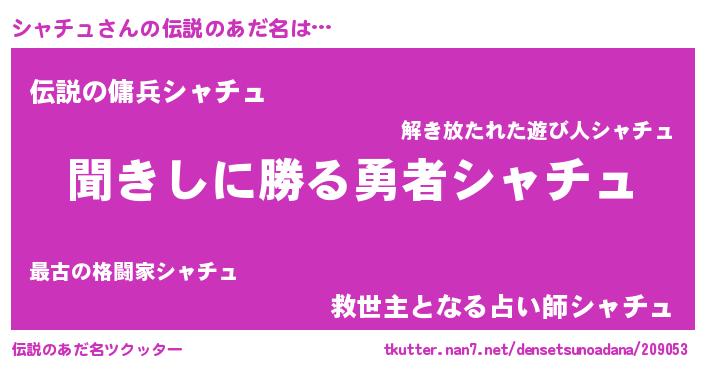 | ヘコむあだ名 | 『シャチュ(苦笑)』『シャにゅー』 |
