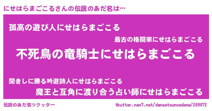 | ヒーロー風カッコイイあだ名 | 『最強戦士ニセハラマゴコル』 |