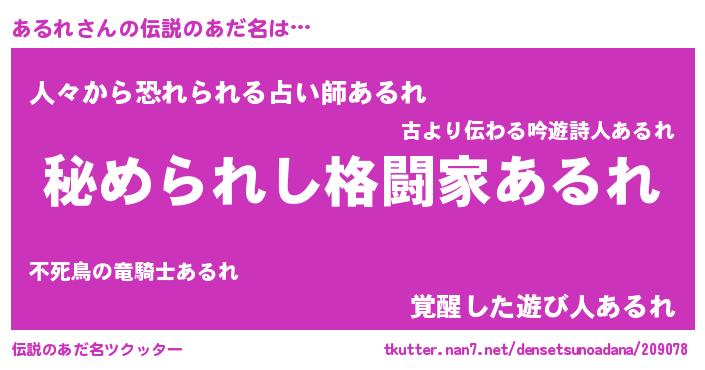| ヒーロー風カッコイイあだ名 | 『ウルトラあるれマン』『愛の使者あるれ』 |