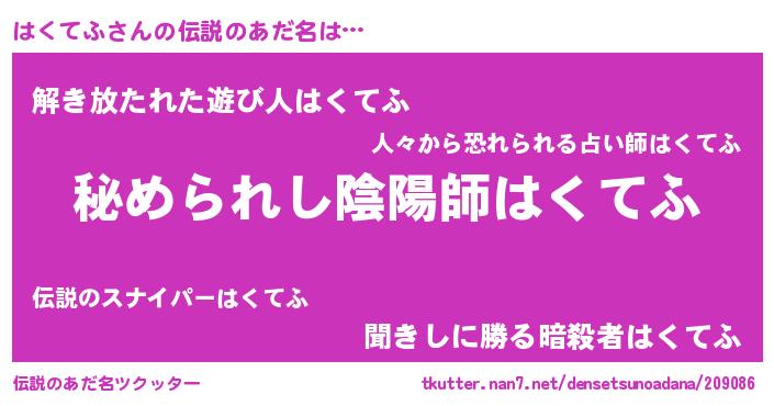 | 女子向けラノベタイトル風あだ名 | 『はくてふが死なない童話 林檎のはくてふの診療簿』 |