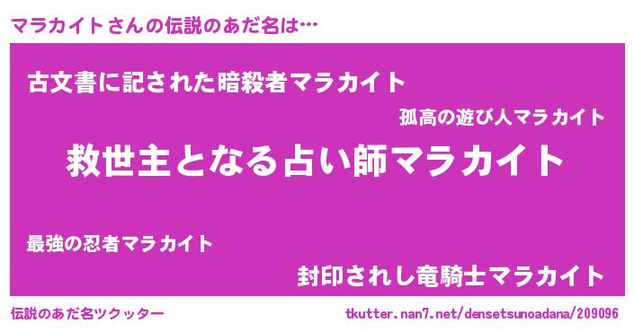 | ヒーロー風カッコイイあだ名 | 『慈愛の使者マラカイト』『仮面マラダー』 |