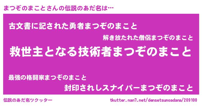 | ヘコむあだ名 | 『まつぞのまこと(小並感)』『まつっふぃ~』 |