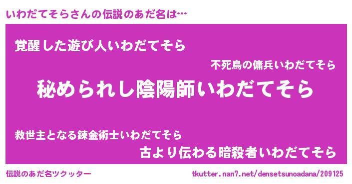 | ポケモン風あだ名 | 『イワダダネ』『ヒイワダテソラ』 |