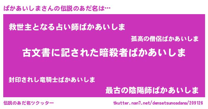 | ヒーロー風カッコイイあだ名 | 『ネオバカアイシマ』『黄金騎士バカ』 |