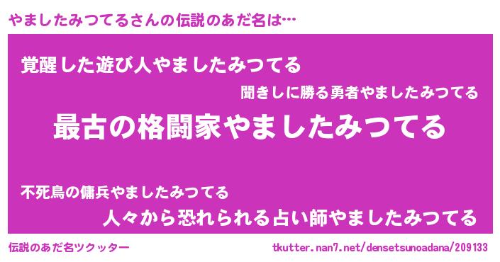 | 男性向けラノベタイトル風あだ名 | 『転生したらやましたみつてるだった件』 |