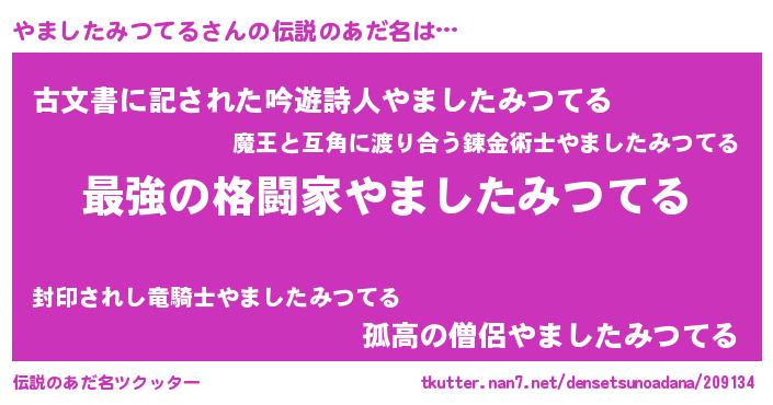 | 胡散臭い通販商品みたいなあだ名 | 『あなたにだけ特別に提供する100年もののヴィンテージワイン…その名も「やましたみつてる」』 |