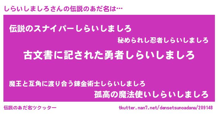 | ヒーロー風カッコイイあだ名 | 『ネオシライシマシロ』『仮面シラダー』 |