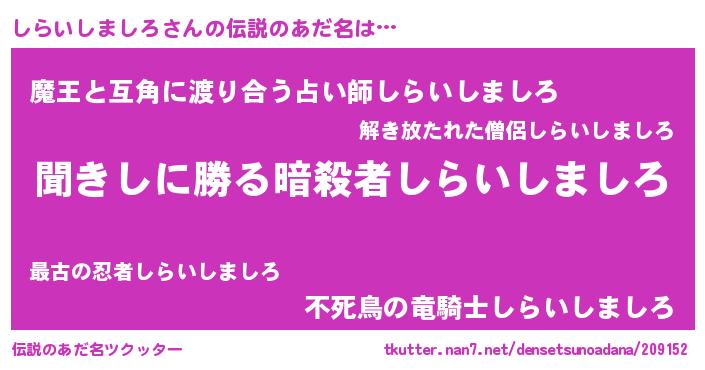 | ヒーロー風カッコイイあだ名 | 『ネオシライシマシロ』『天弓騎士シラ』 |