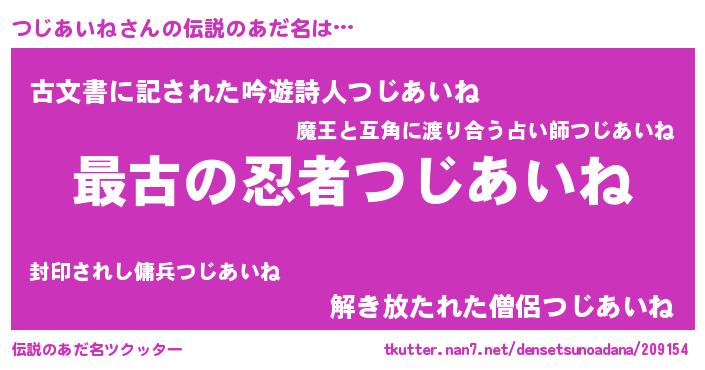 | ファンタジー風あだ名 | 『エターナルツジアイネー』『ゼツジトゥ』 |