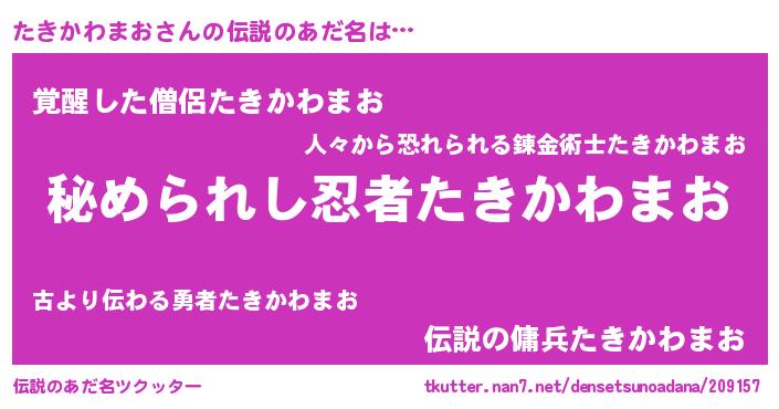 | 意味不明あだ名 | 『たきかわまおフォーエバー』 |