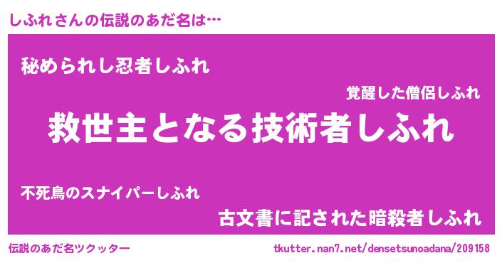 | ヒーロー風カッコイイあだ名 | 『天空の使者しふれ』『究極戦士シフレ』 |