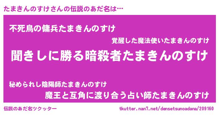 | 意味不明あだ名 | 『永久保存たまきんのすけ』 |