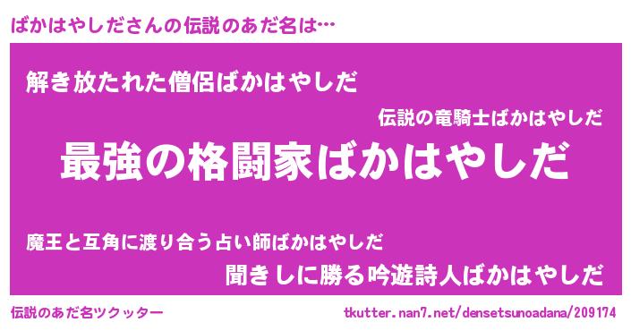 | 意味不明あだ名 | 『つくし科ばかはやしだ属』 |