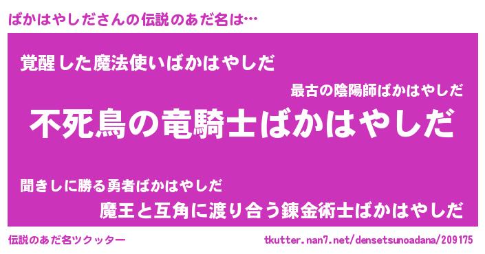 | 胡散臭い通販商品みたいなあだ名 | 『世界中を虜にした100年もののヴィンテージワイン…その名も「ばかはやしだ」』 |