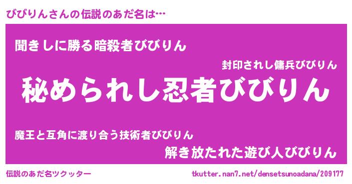 | ファンタジー風あだ名 | 『エターナルビビリンー』『ゼビビトゥ』 |