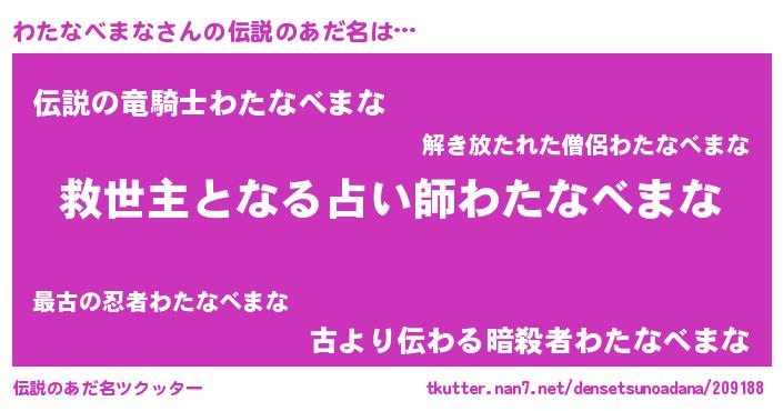 | 胡散臭い通販商品みたいなあだ名 | 『あなたにだけ特別に提供する限定10本のレアな日本酒…その名も「わたなべまな」』 |
