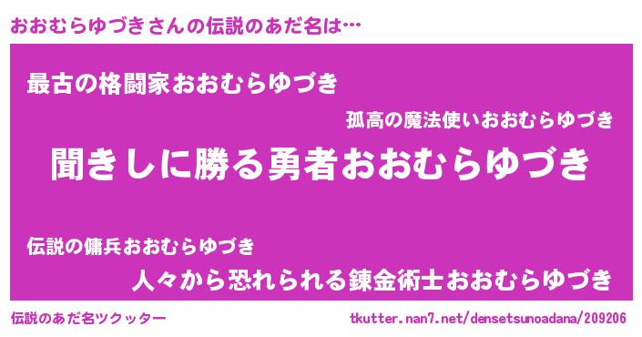 | 意味不明あだ名 | 『自称おおむらゆづき』 |