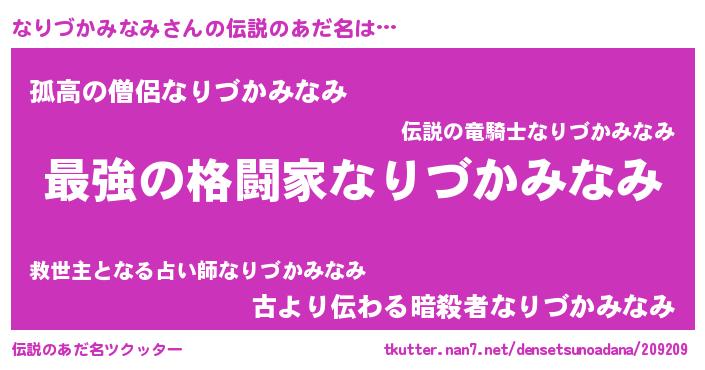 | 意味不明あだ名 | 『自称なりづかみなみ』 |