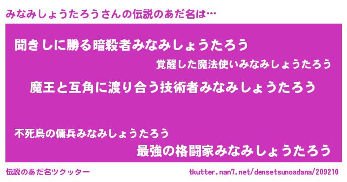 | ヒーロー風カッコイイあだ名 | 『慈愛の使者みなみしょうたろう』 |